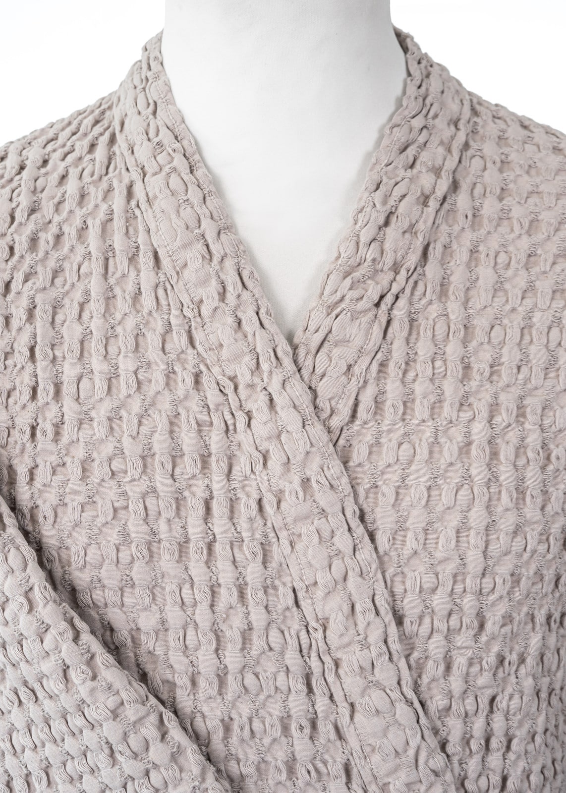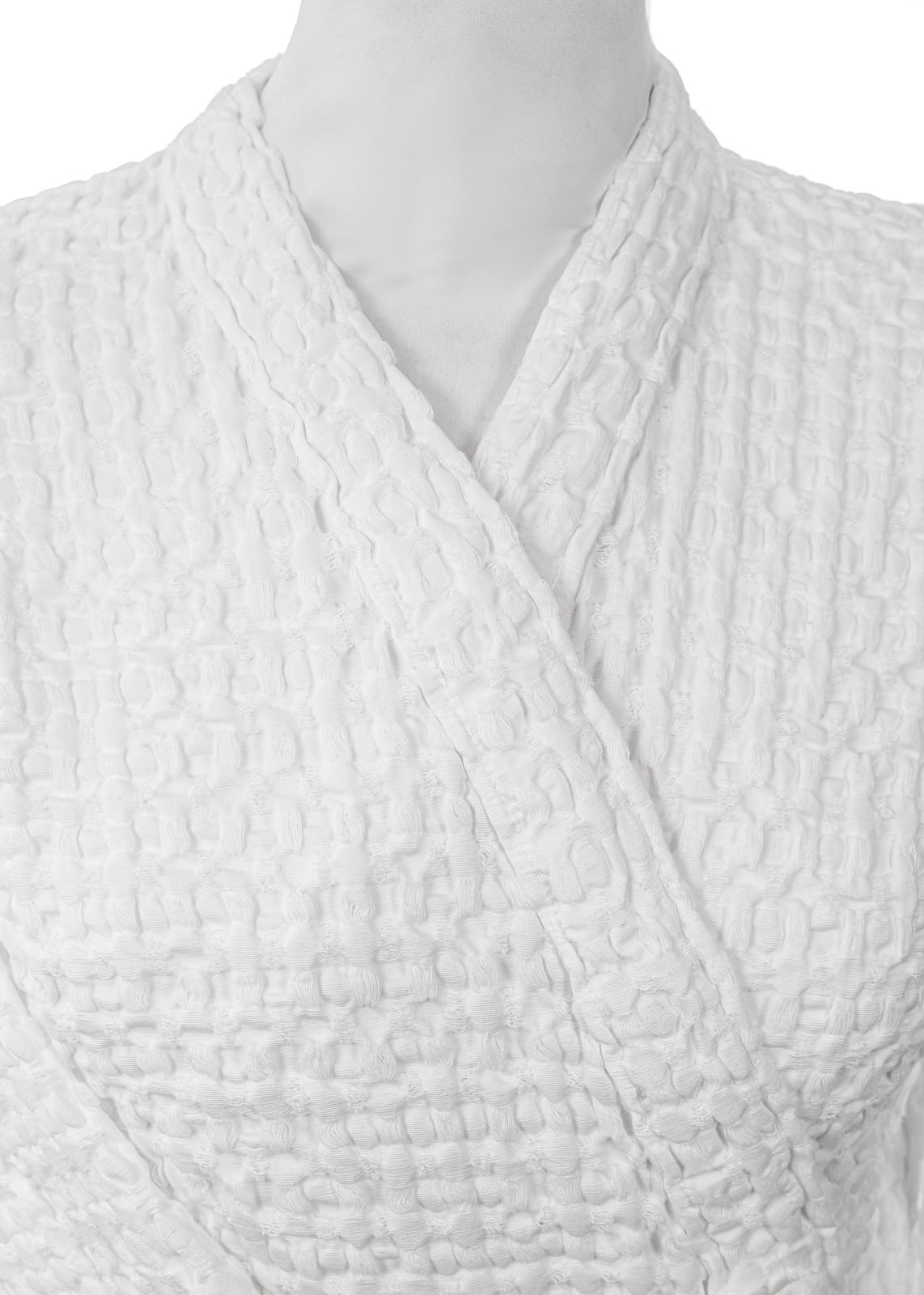 Voici le peignoir Ecuador, qui apporte une touche luxueuse à votre détente. Fabriqué en coton 100 % premium, il s’inspire du design du seersucker, réinventé en une texture douce et spongieuse pour un confort absolu.